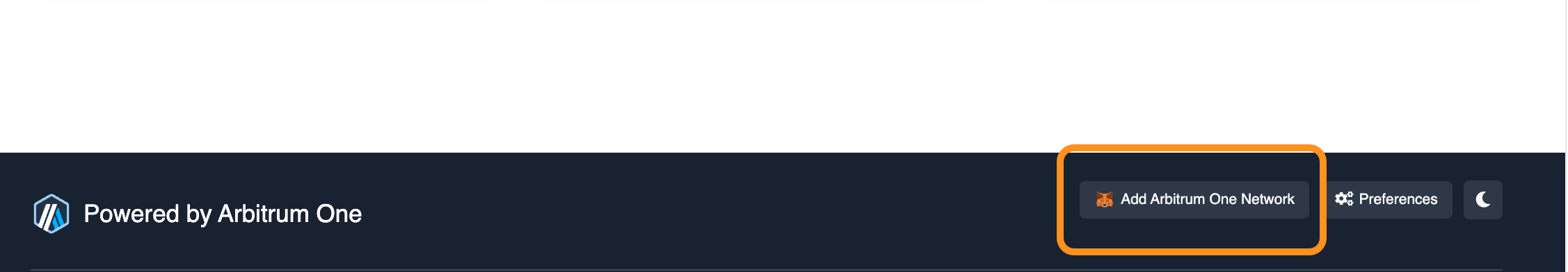 • Scroll down to the bottom of the page and click on the button Add Arbitrum One Network