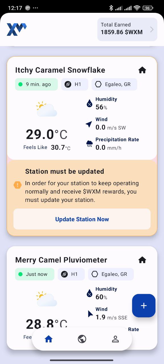 In order for your station to keep operating normally and receive WXM rewards, you must update the station.